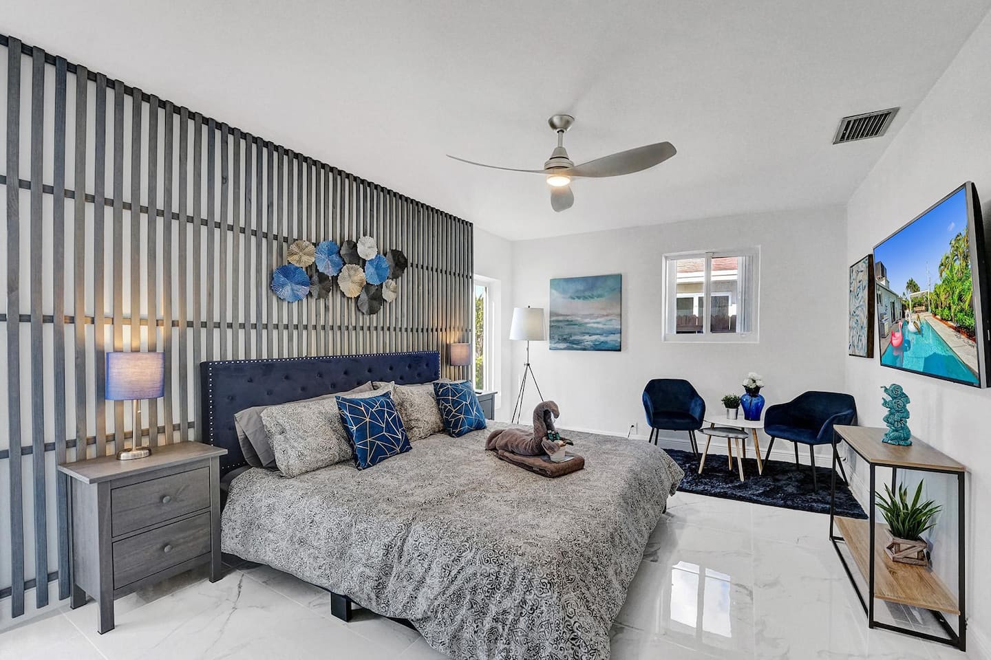 Want to test the Polysleep Mattress yourself? Spend a vacation and enjoy the best sleep ever in this beautiful and renovated 4 bedroom house with 2.5 bathrooms located in the prestigious Hollywood Lakes. Enjoy your morning coffee or evening cocktail by the pool. Perfect location for friends and families. Spend some quality time in a residential neighborhood located an 8-10 minute drive to Hollywood beach. Parking for 3 cars max.
