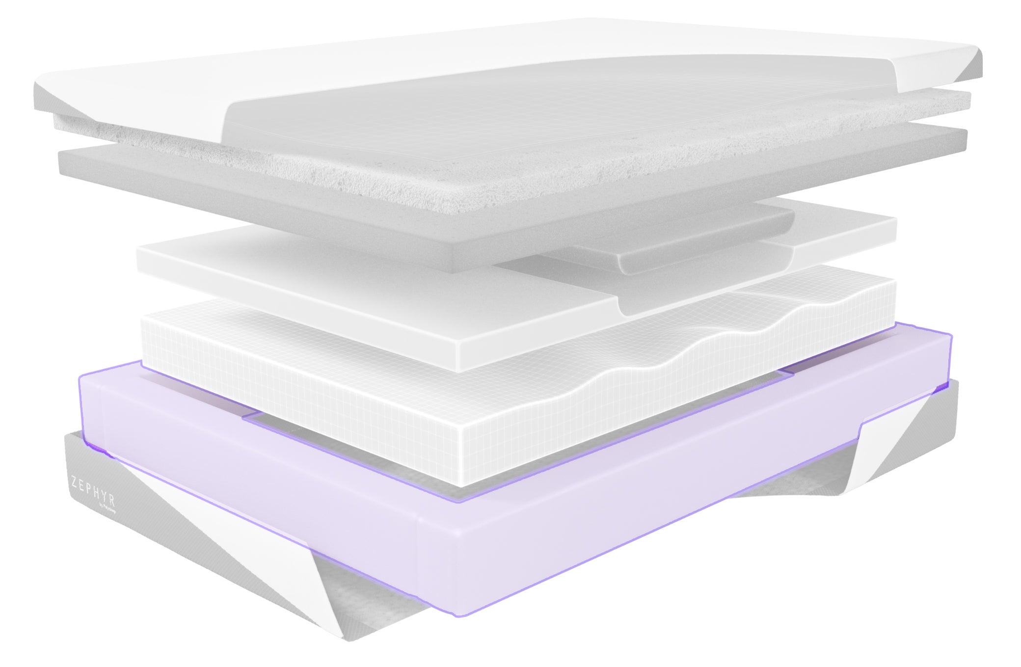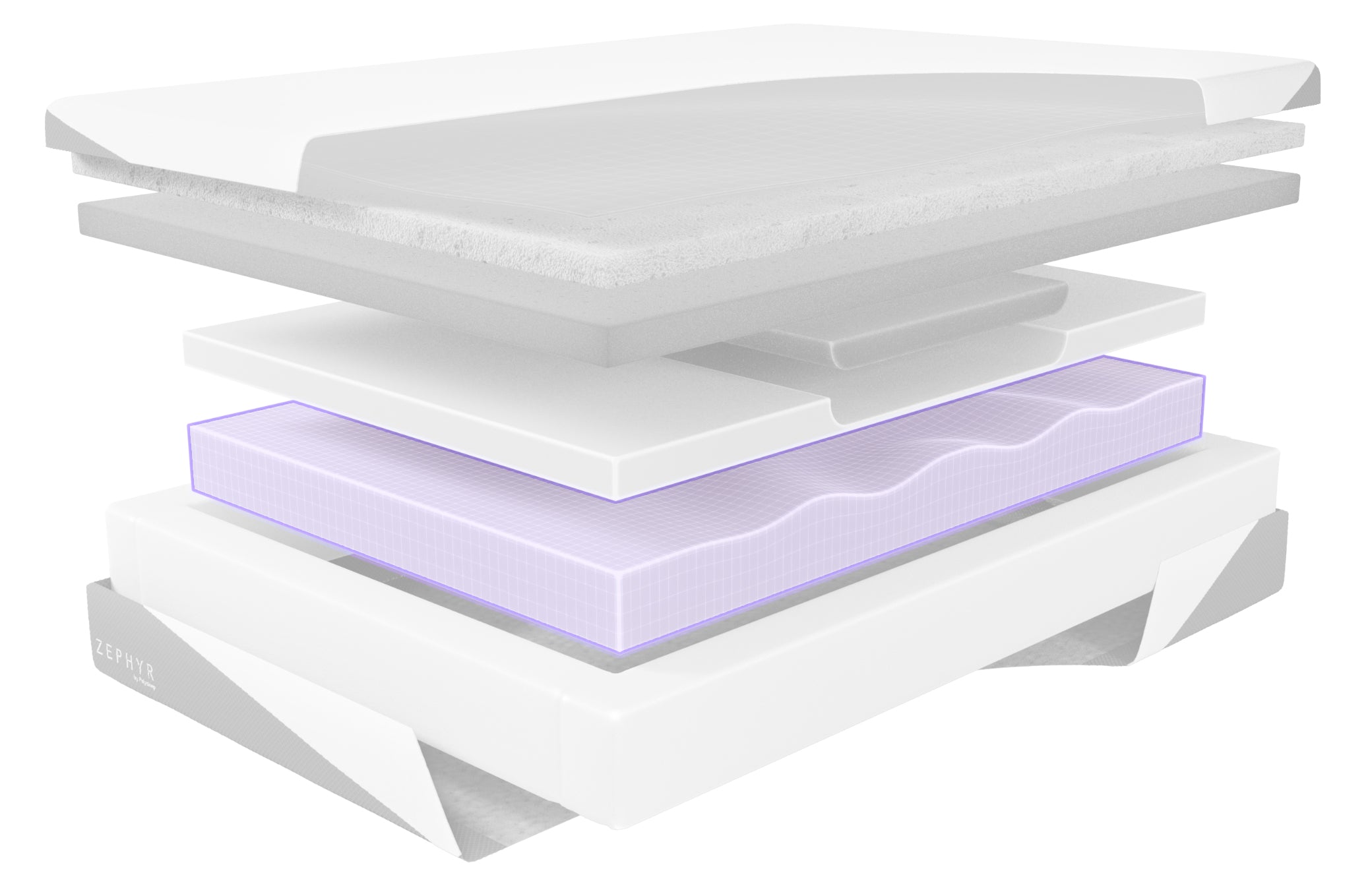 Exclusive Support Frame Cover The Zephyr 2.0 mattress distinguishes itself by offering a one-of-a-kind feature that maintains consistent support and structure across the entire sleeping surface. |